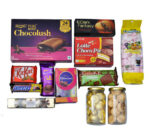 Items – Marsh Mello, Dark Fantasy, Kikat, Snickers, Silk, Ferrero, Lotte Choco Pie, Cake, Celebration, Choco Lush, 200g Cookies, 200g Handmade Chocolates, Tilak Kit.
