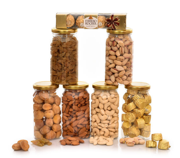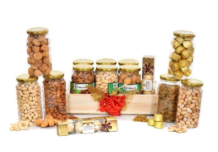 Enjoy a healthy treat with our selection of fresh, crunchy, and premium quality dry fruits like almonds, cashews, pistachios, and raisins. These handpicked nuts are not only delicious but also packed with nutrients, making them an ideal choice for festive gifting.